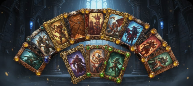 * **💎 Unique Card Frames:** Gold, Iron, Crystal, Wood, Stone, Dragon, Tentacles, and more.